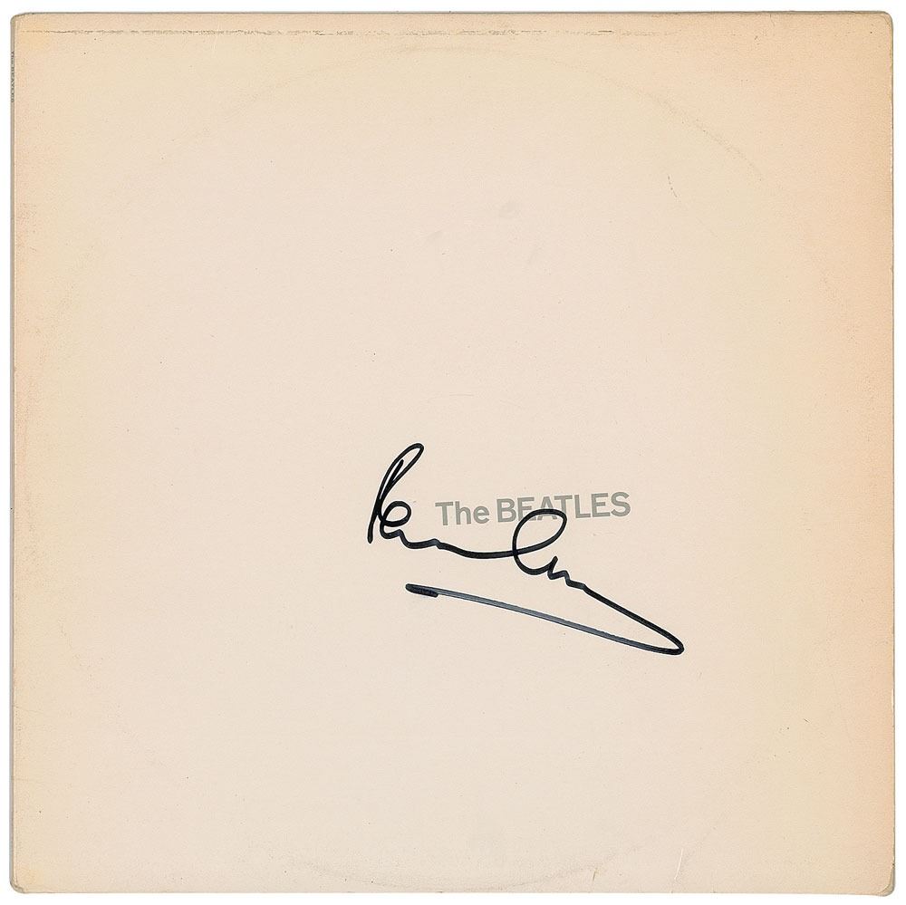 Very desirable self-titled 'White Album' by the Beatles, signed boldly on the front cover in black felt tip by Paul McCartney. In fine condition, with a bit of light scuffing. The record is not included. Examples of the 'White Album' signed by any member of the Beatles are quite rare and highly sought-after. Accompanied by a John Brennan Collection letter of provenance.
