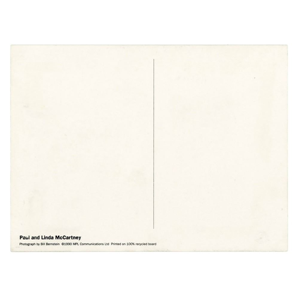 Very appealing color 1990 MPL Communications Ltd. promotional postcard of Paul and Linda McCartney, 6 x 4.25, signed nicely on the front in blue felt tip by the former Beatles member. In very fine condition. Accompanied by a certificate of authenticity from Tracks.