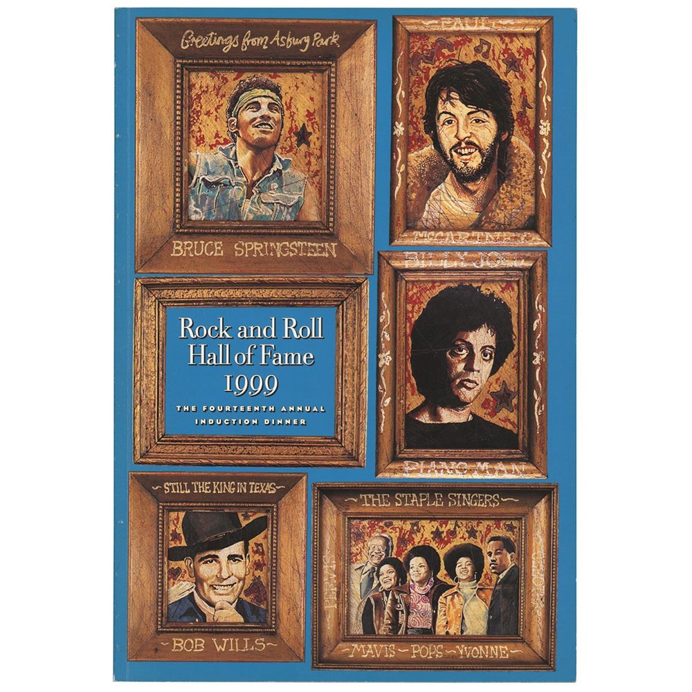 Uncommon original official 14th Annual Rock and Roll Hall of Fame induction dinner program made in quantities sufficient only for distribution to the attendees of the induction ceremony, held at New York's Waldorf-Astoria Hotel on March 15, 1999. The high-quality program is 82 pages, 8.25 x 12.25, and features images and biographies of the inductees, including Paul McCartney, Bruce Springsteen, Billy Joel, Curtis Mayfield, Del Shannon, Dusty Springfield, the Staple Singers, Charles Brown, Bob Wills and His Texas Playboys, and George Martin. In fine condition, with trivial handling wear. These programs were not available to the general public and only given out at the induction ceremony, making them very hard to come by.