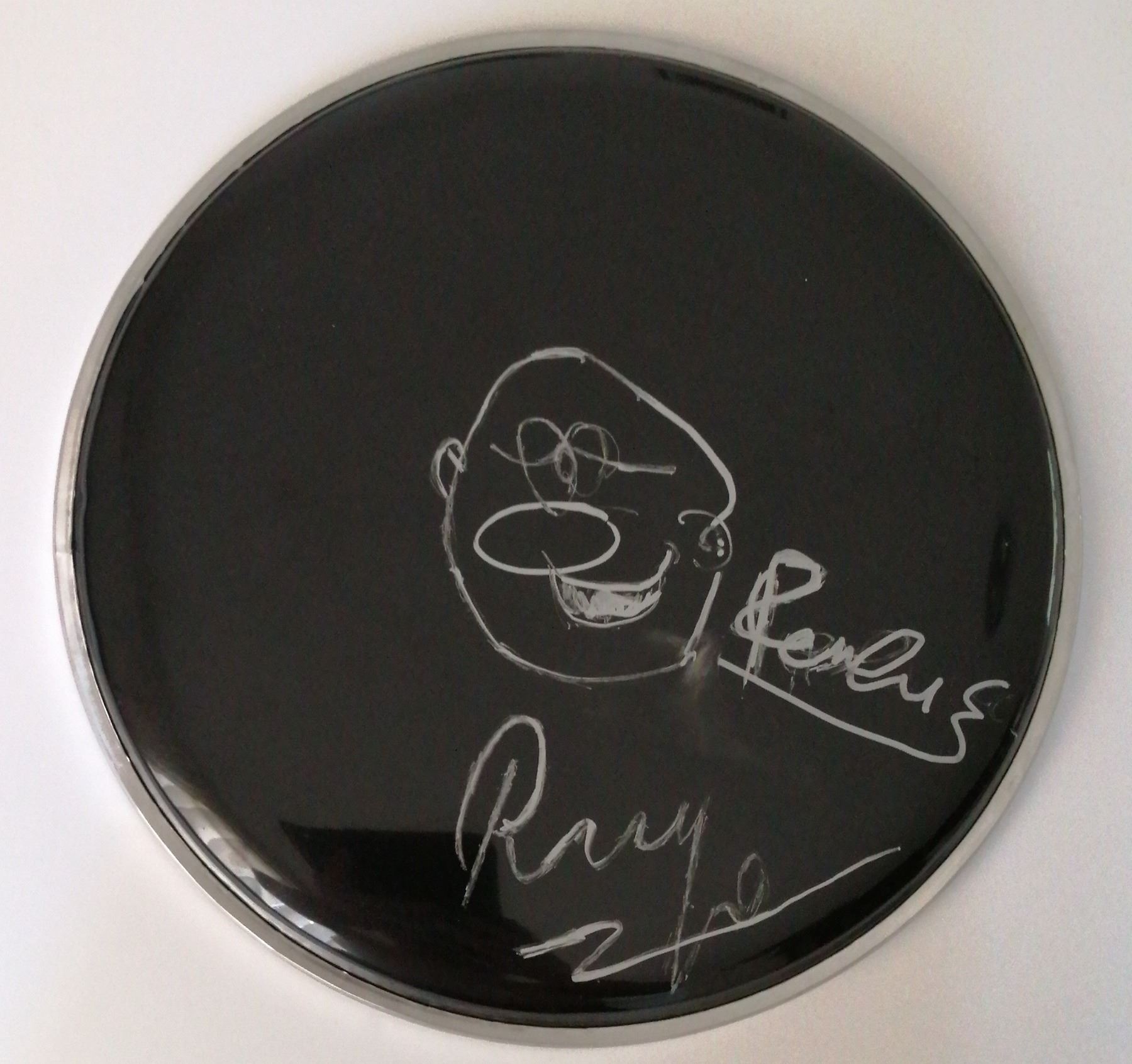 Rare black 10 inch drumhead signed by Paul and Ringo, in silver pen. Paul has also drawn a face in the centre. Supplied with coa.