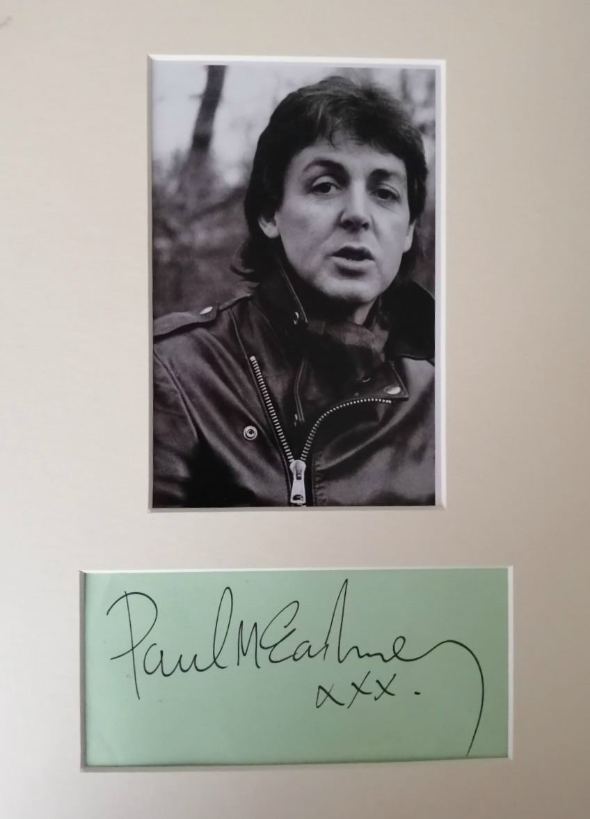 Sir James Paul McCartney CH MBE is an English singer, songwriter, musician, and record and film producer who gained worldwide fame as co-lead vocalist and bassist for the Beatles. His songwriting partnership with John Lennon remains the most successful in history. Paul McCartney's autograph is mounted, framed, and supplied with coa.