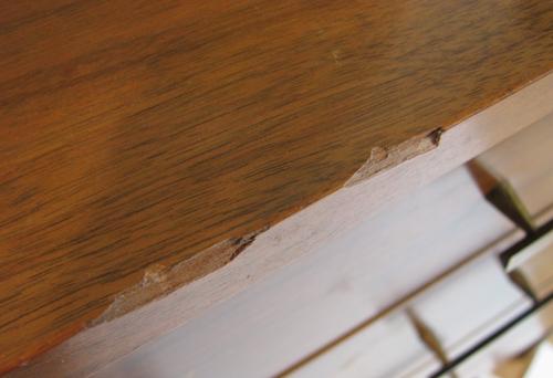 Condition: In generally good condition apart from some damage to the top edge and to the facing of the drawers.