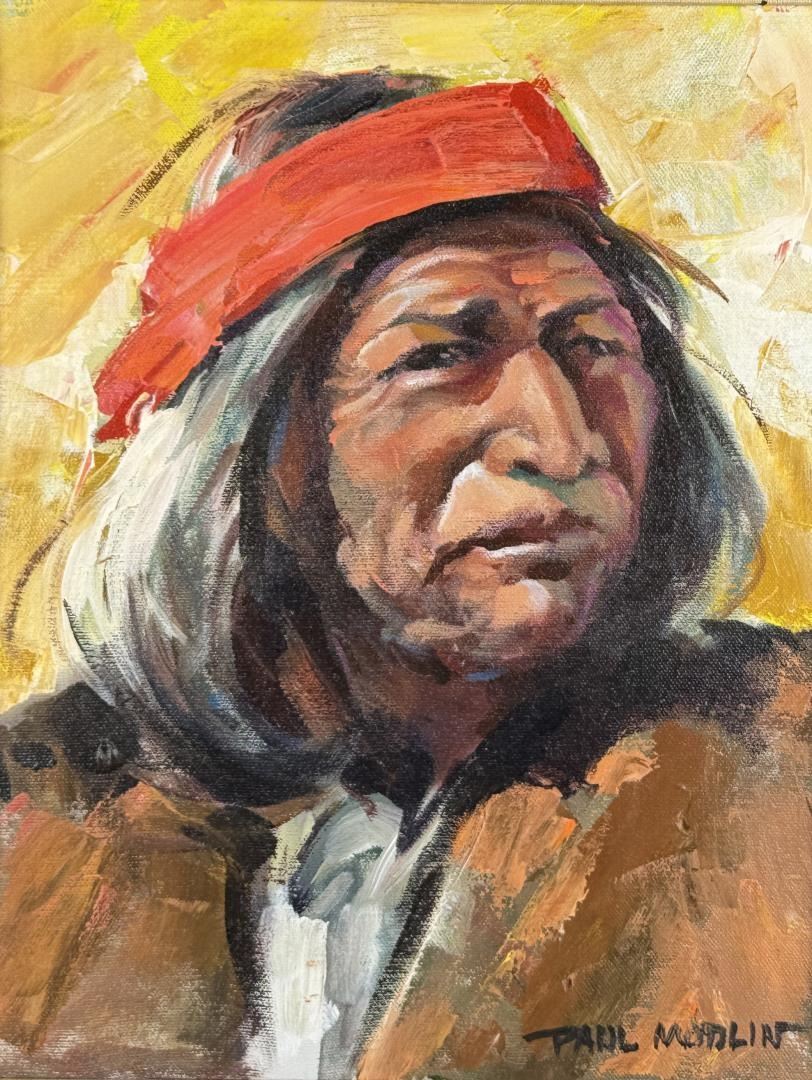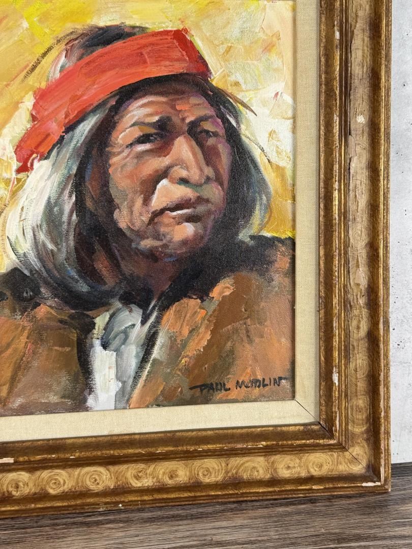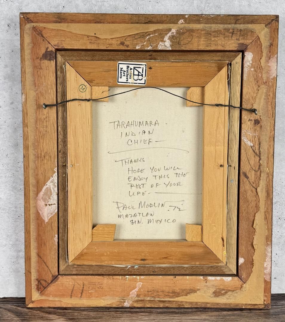 Title is Tarahumara Indian Chief. 11" by 14" unframed. 17 1/2" by 20 1/2" framed. Oil on Canvas. Paul Modlin (1926 - 2008) is known for Painting.