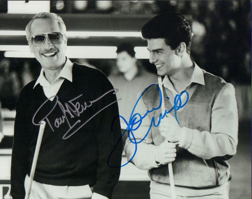 Black and white 8x10 photo from the film The Color of Money signed by Paul Newman and Tom Cruise. All items come with a certificate of authenticity good for the life of the piece.