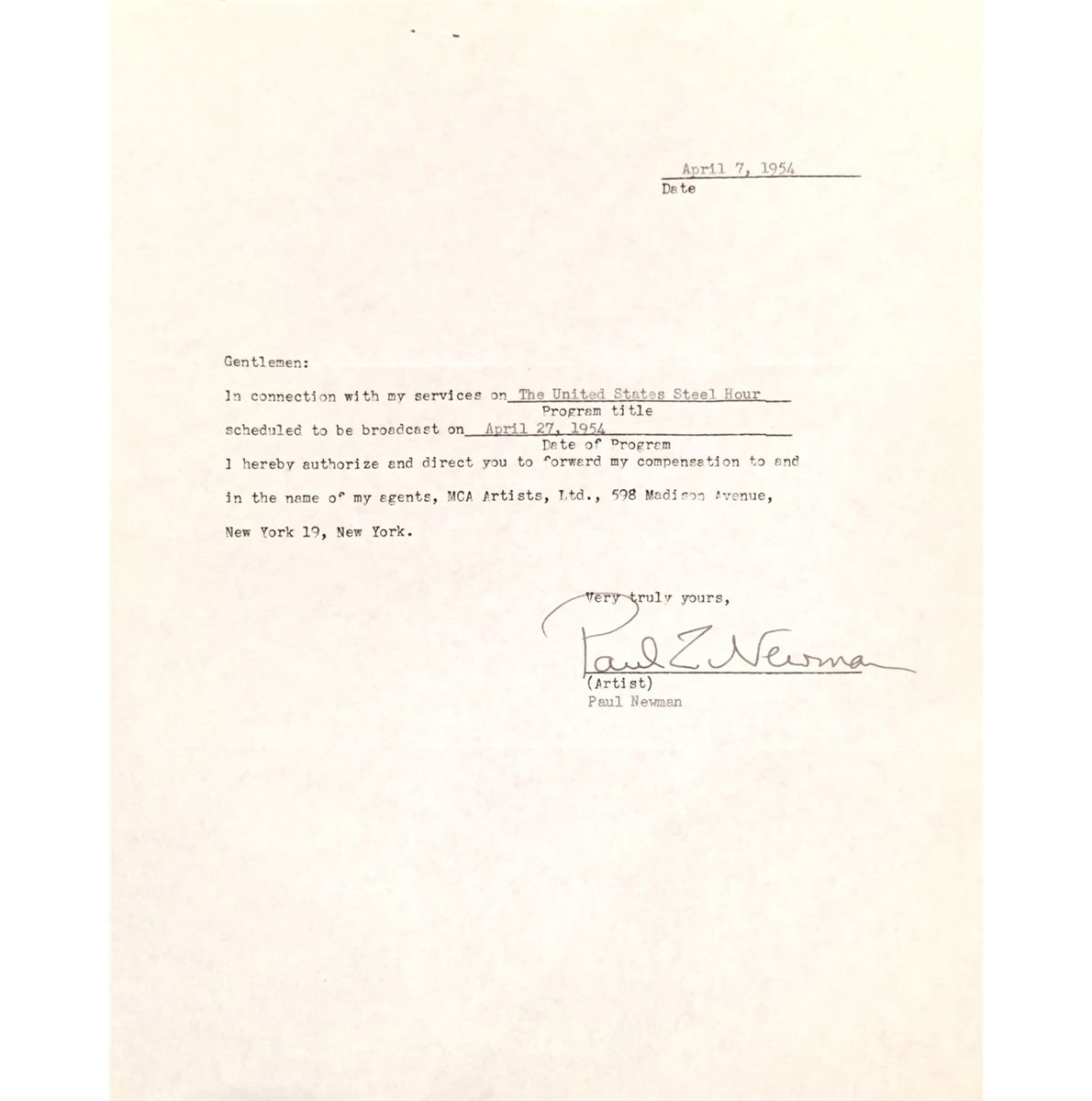 Paul Newman original signed contract to appear on "The United States Steel Hour" on April 27, 1954