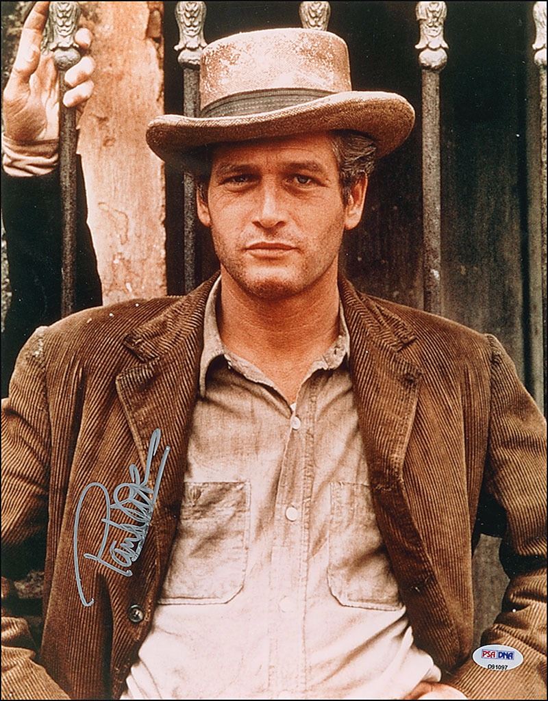 Color glossy 11 x 14 photo of Newman from the 1969 film Butch Cassidy and the Sundance Kid, signed in silver ink. In fine condition.