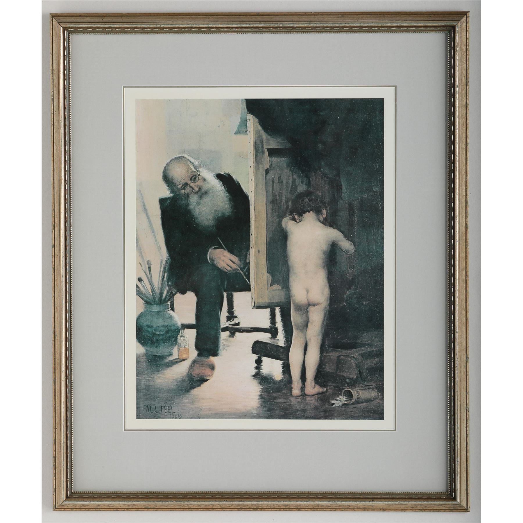 Paul Peel's "The Tired Model" print. This piece has been professionally matted, and custom framed under glass. Image- 17 3/4" x 13 3/4". Frame- 27 1/2" x 23 1/4".