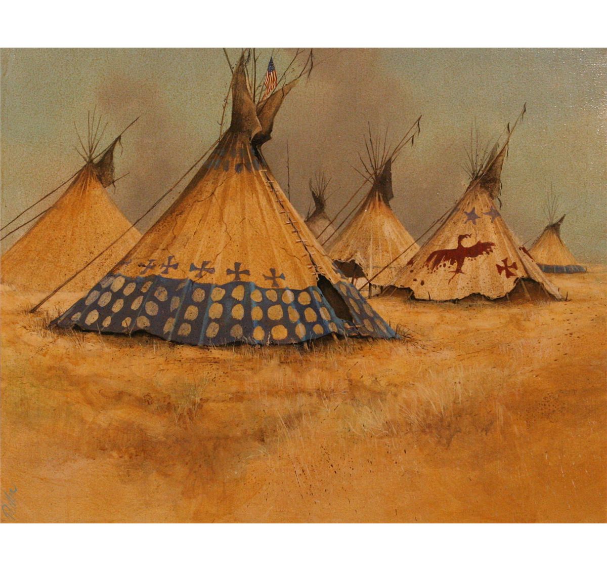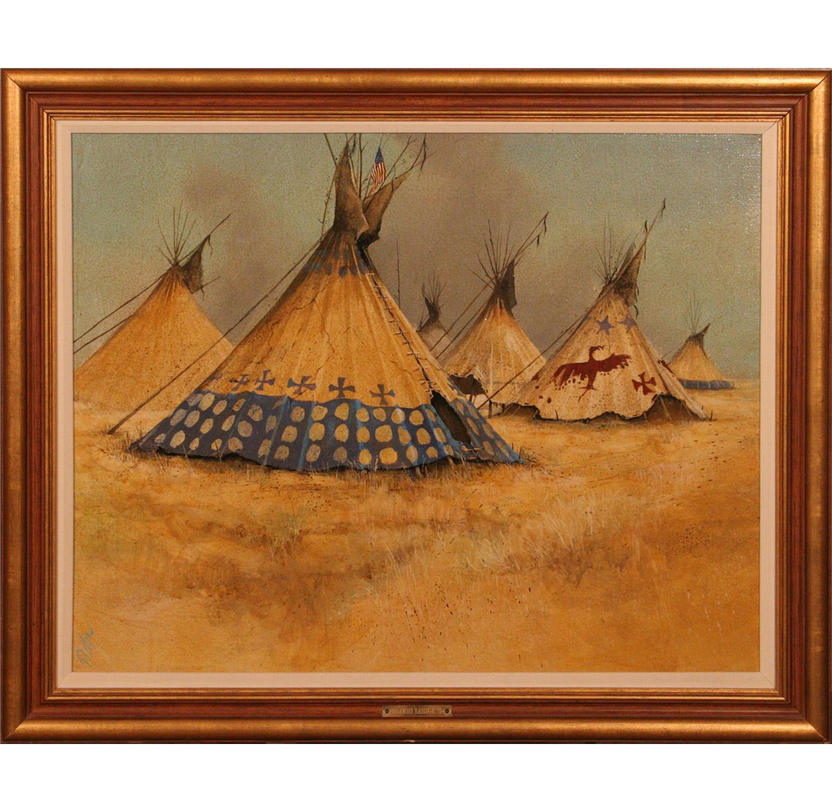 Paul Pletka (1946 - ). Blood Lodges. 24" x 30" acrylic on canvas. Signed lower left: Pletka.