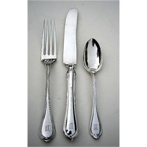 This Set of Towle Paul Revere is in fine condition and is monogrammed with an Old English "W" or "M". This luncheon sized set is a knife, fork and spoon. Check out our other listings for other pieces that match this set.