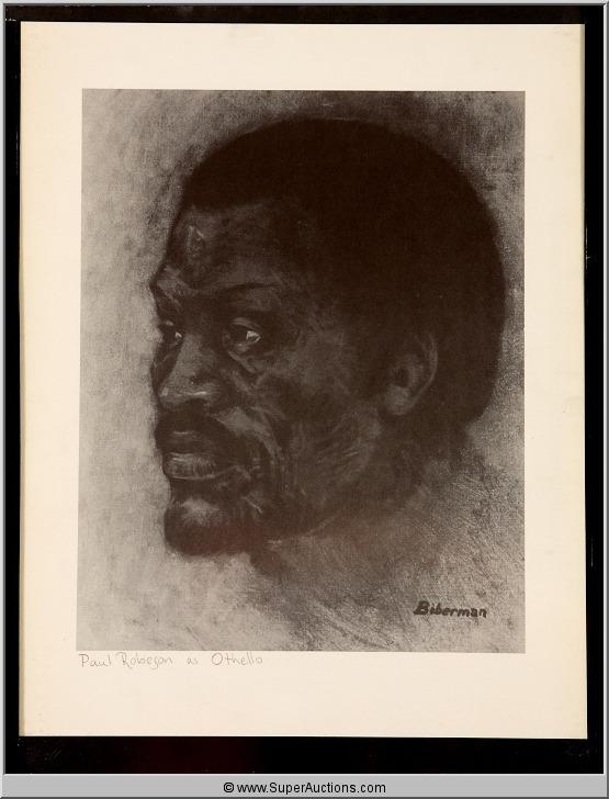 A Sketch of Paul Roberson as "Othello" by Biberman / Mounted on Foam Board with a Plexiglas front cover / L 14" x H 18"