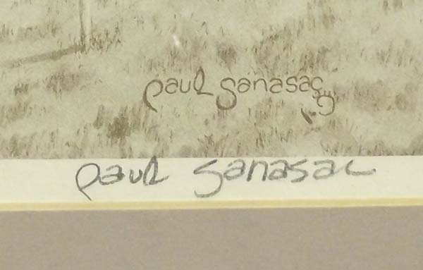 Paul Sanasac Signed and numbered print, 16/125. Framed in a wood frame, matted, under glass. Signed in pencil by the artist and numbered 16/125. Visual measures approx. 8''H x 11 1/2''W. Buyers Pay Actual Shipping and Handling Charges(see terms and conditions for more information).