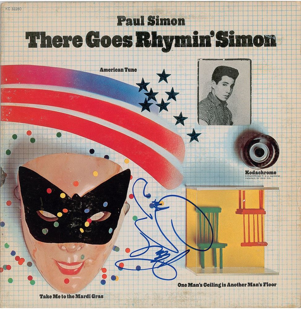 There Goes Rhymin' Simon album signed on the front cover in blue felt tip by Paul Simon. In fine condition. The record is included. Accompanied by a John Brennan Collection letter of provenance.