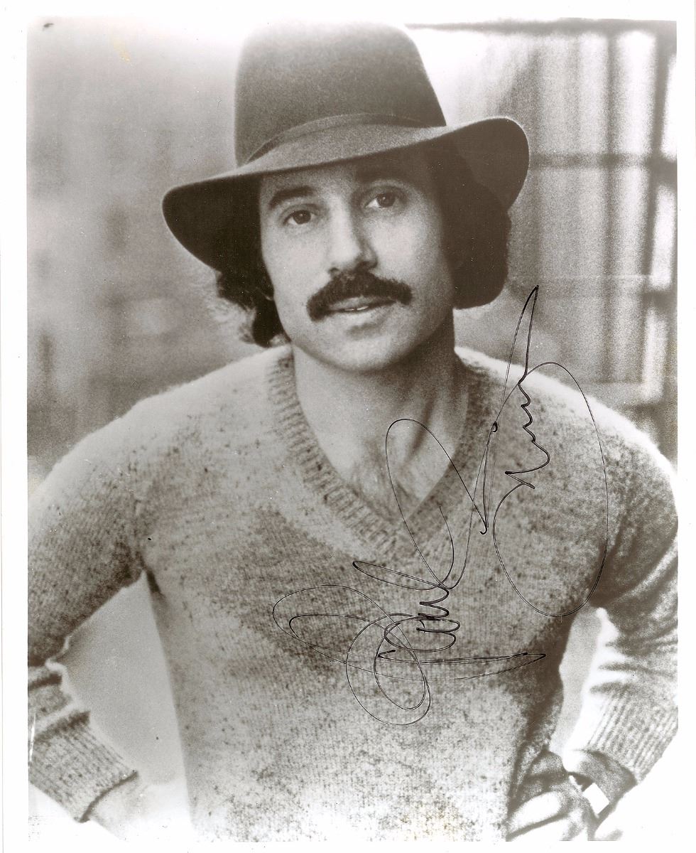 Choice glossy 8 x 10 photo of Simon wearing a tight sweater and classic hat, signed vertically in black felt tip. In very fine condition.