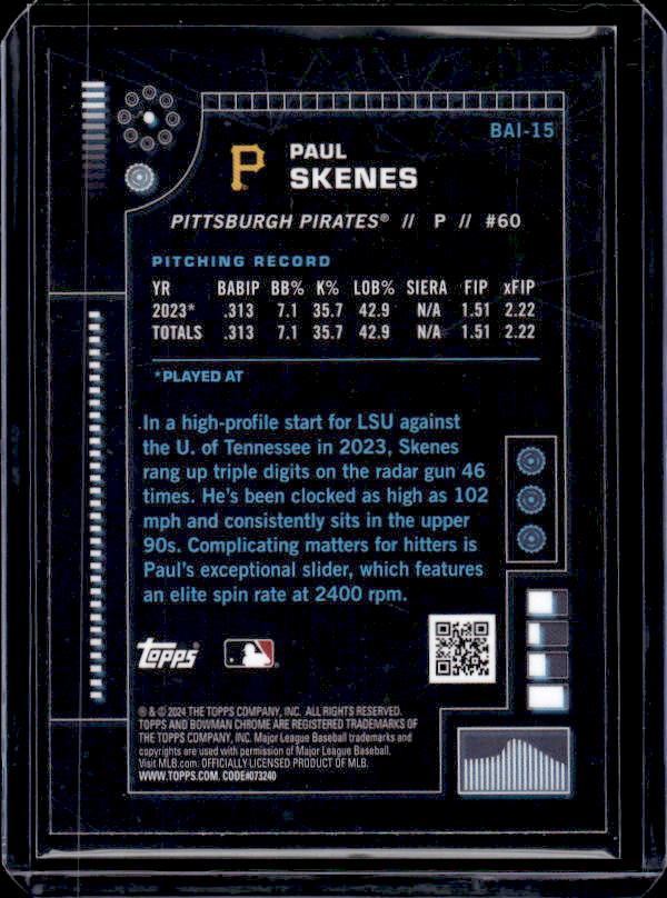 Paul Skenes Bowman Chrome AI Refractor #BAI-13