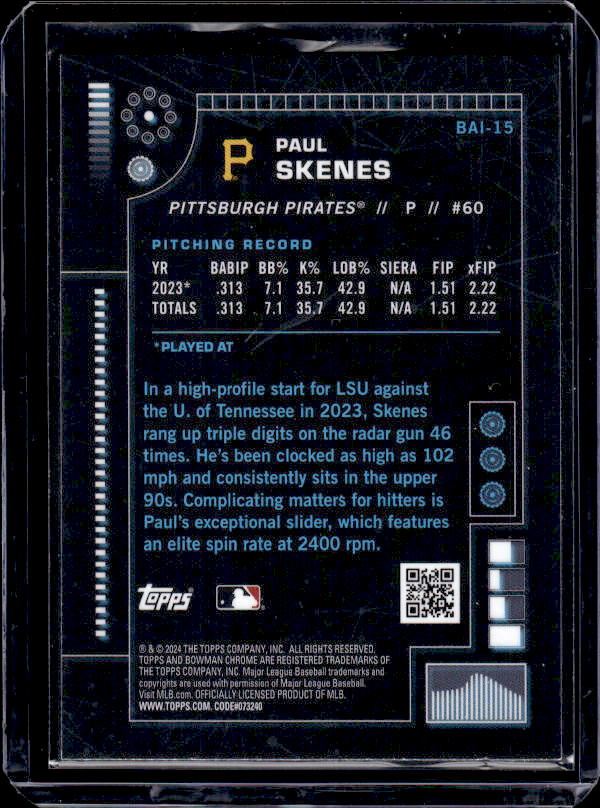 Paul Skenes Bowman Chrome AI Refractor #BAI-15
