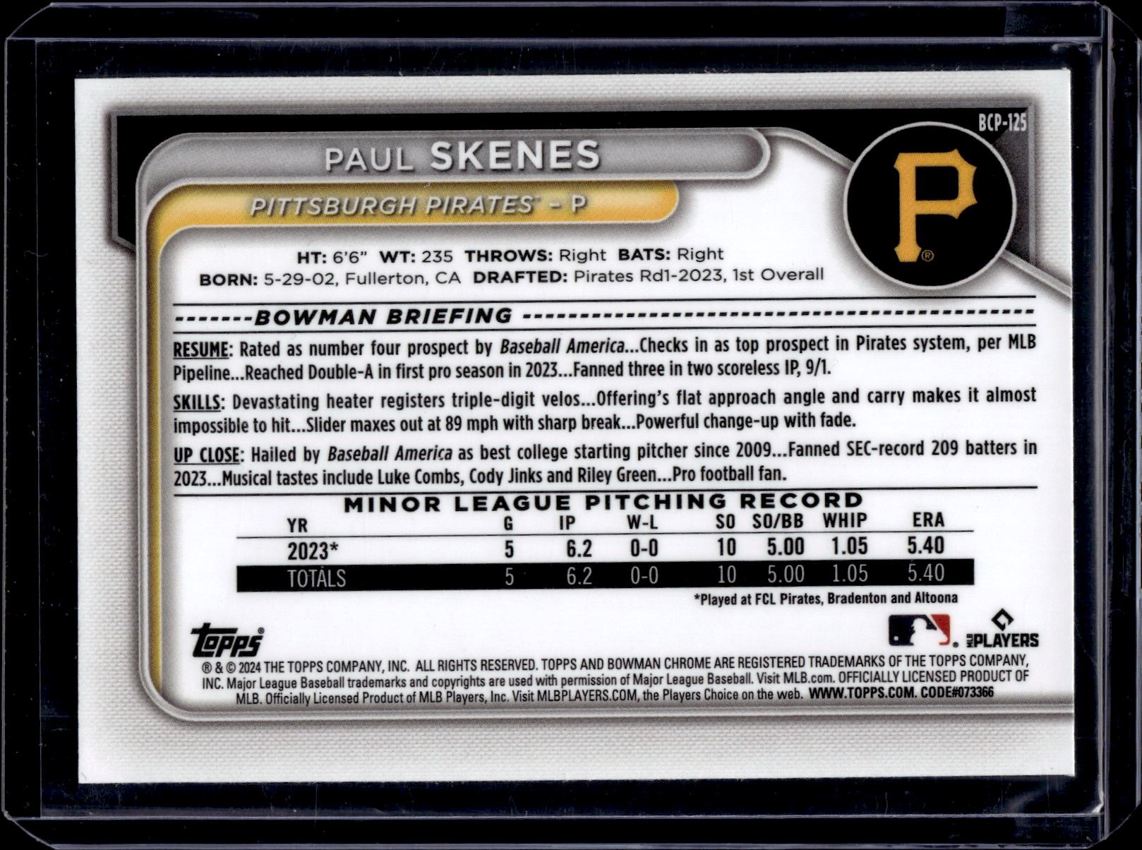 Paul Skenes Mega Box Mojo Refractor 2024 Bowman Chrome #BCP-125