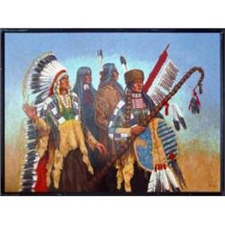 Paul Surber (b.1942) (Montana) Oil on Canvas. "American Indians." 44" x 60". signed lower right. Est $2,000 - $3,000.
