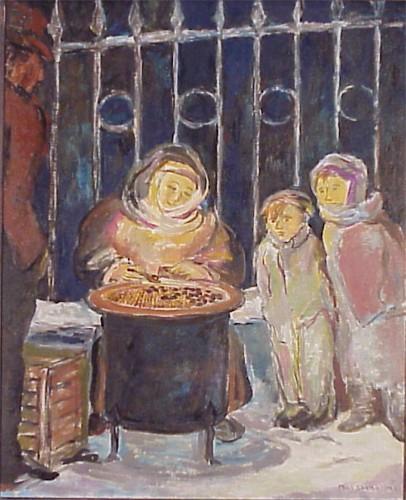 Paul Szaba (20th Century), ROASTING CHESTNUTS, 1982, oil painting on canvas, 32 x 26”, signed a...