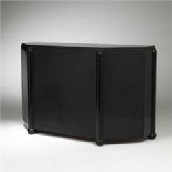 Paul T. Frankl, attribution buffet Huller & Co. New York USA, c. 1930 lacquered wood, 62"w x 22.5"d x 37"h Center doors contain four drawers, one with a divider for silverware and flanking doors each conceal two adjustable shelves. Branded manufacturer's mark.