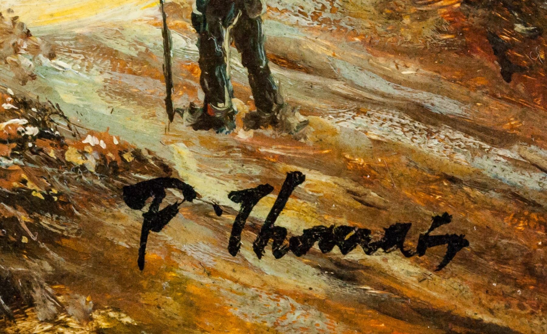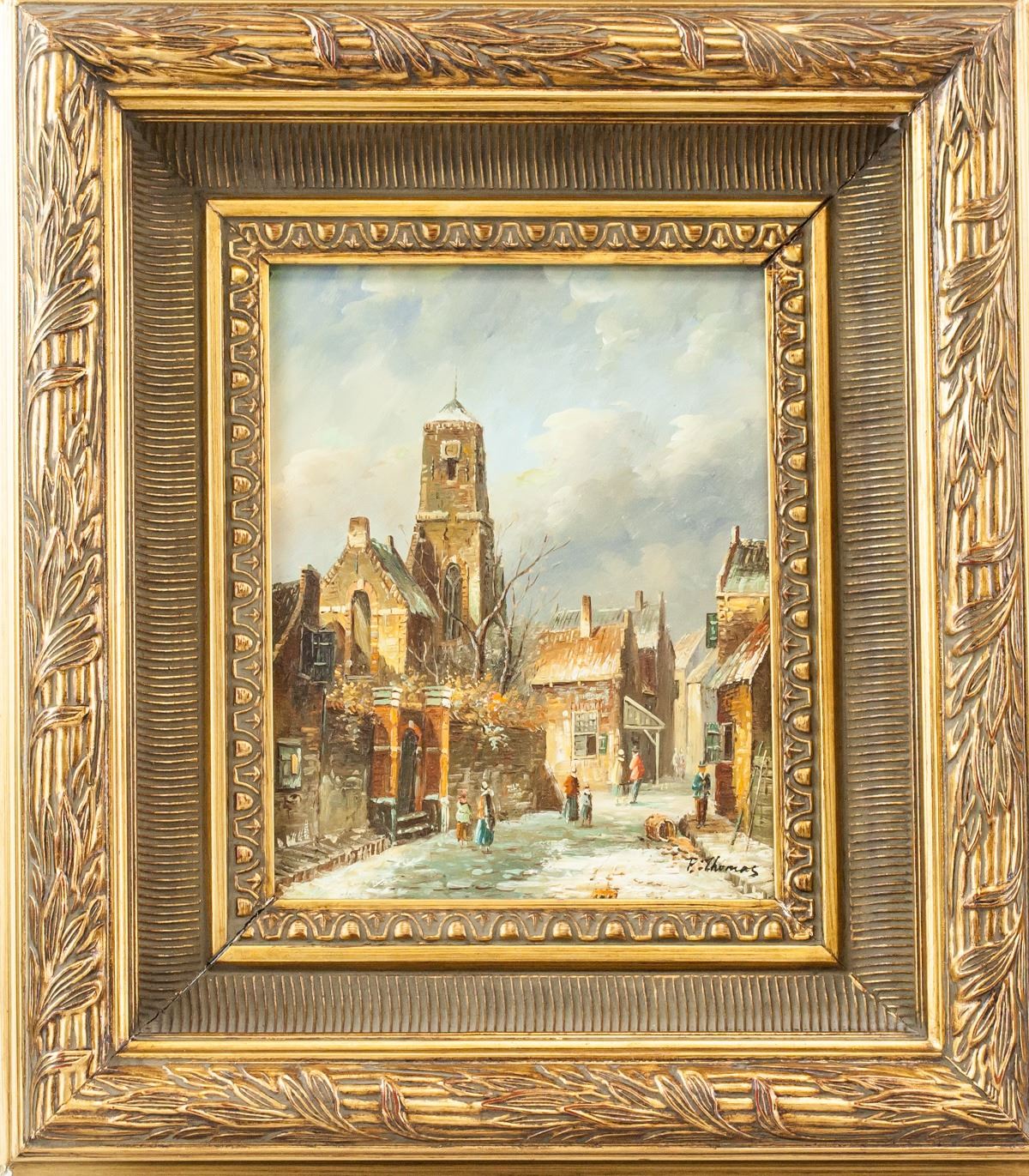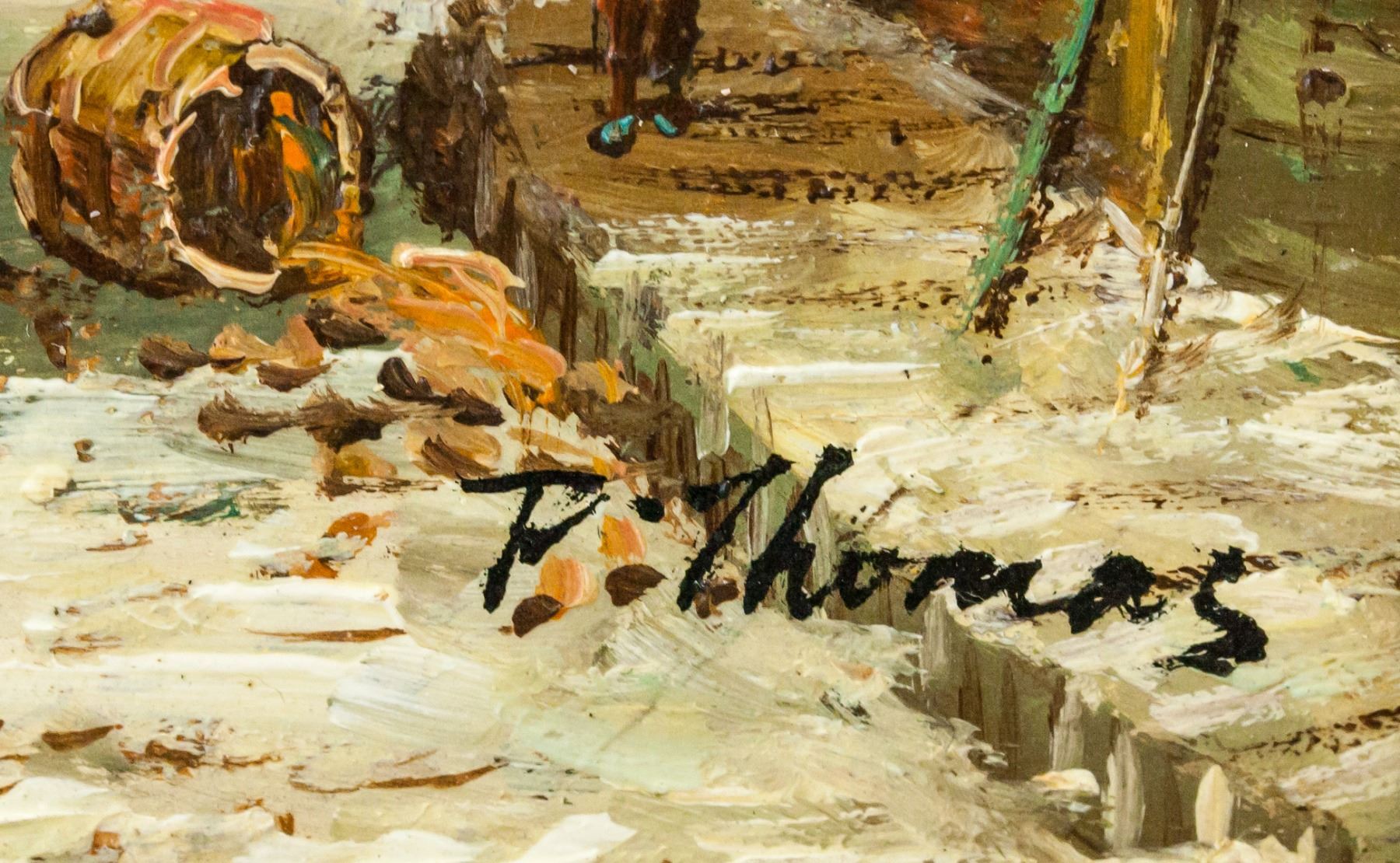 Oil on board, framed. Featuring cityscene and landscape scene. Signed "P. Thomas" in the bottom right corner. Attributed to Paul Thomas (1868-1910, French). 23.5 x 18.5 cm (9.25 x 7.25 in), Frame: 44 x 38.5 cm (17.25 x 15.5 in).