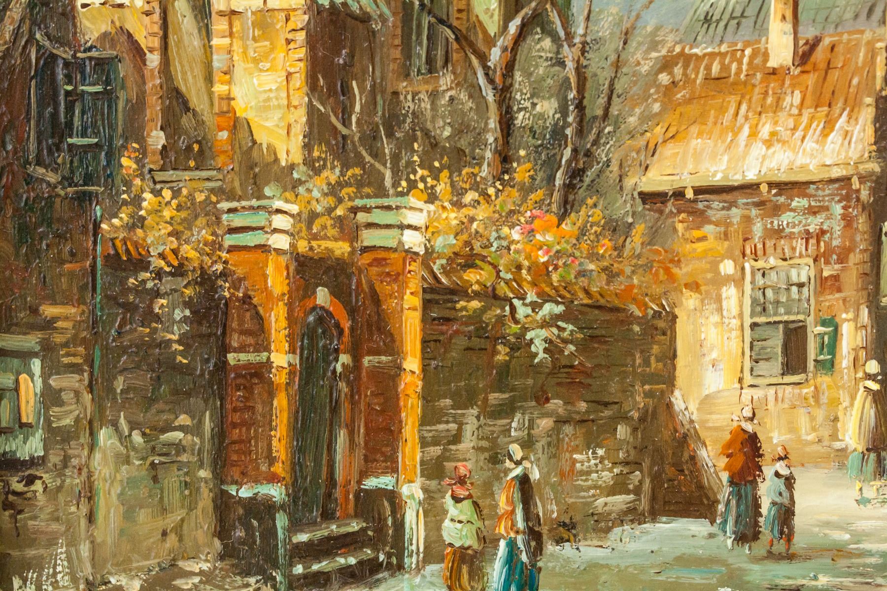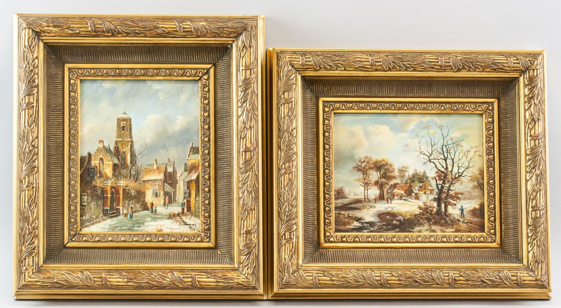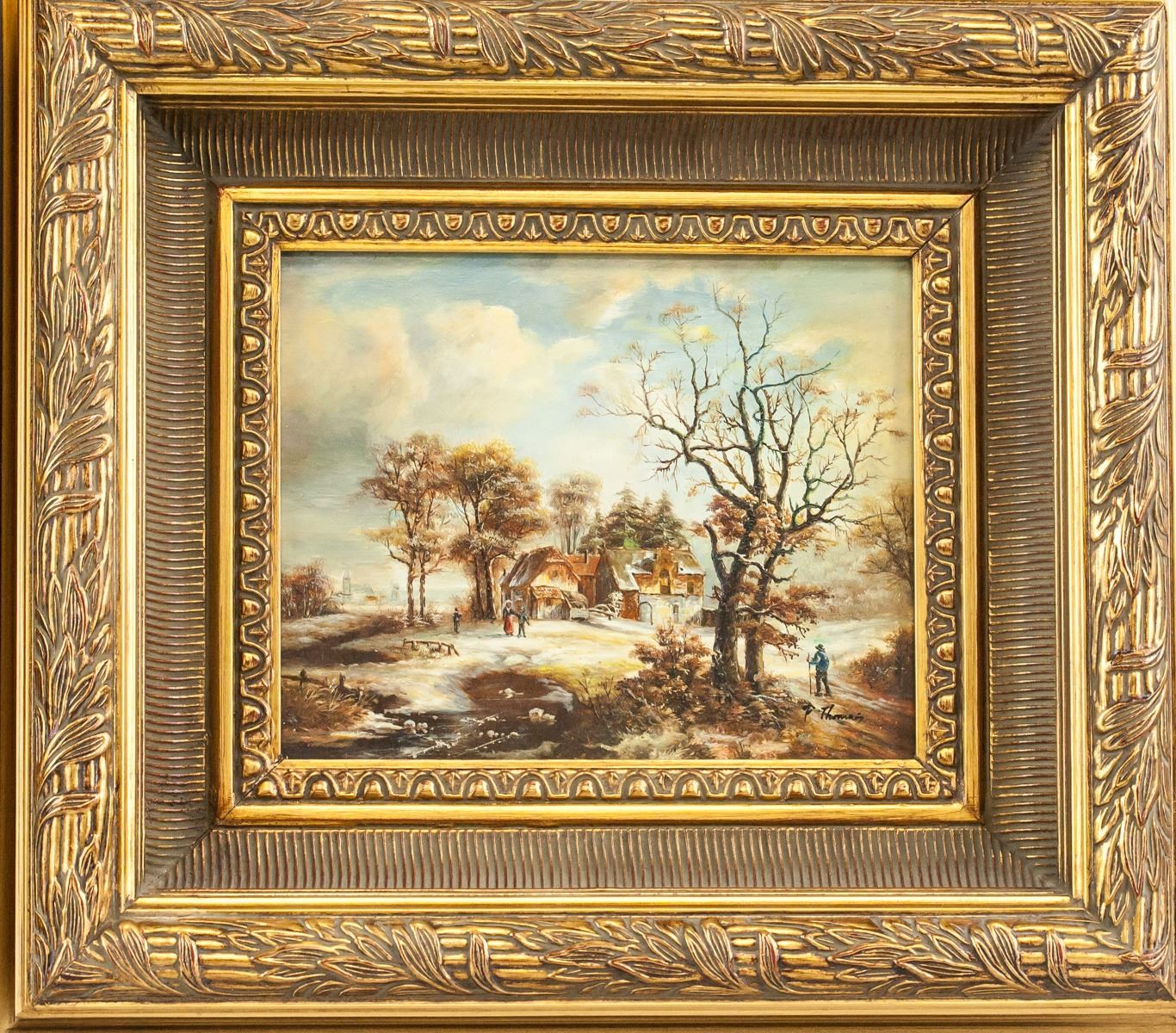 Oil on board, framed. Featuring cityscene and landscape scene. Signed "P. Thomas" in the bottom right corner. Attributed to Paul Thomas (1868-1910, French). 23.5 x 18.5 cm (9.25 x 7.25 in), Frame: 44 x 38.5 cm (17.25 x 15.5 in).