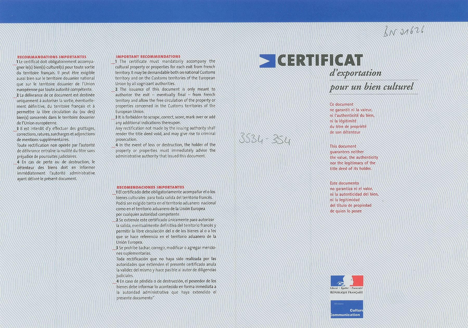 All lots sold by RR Auction are accompanied by an Auction Certificate (“AC”). On any lot presented with an AC issued by RR Auction, the certification is only as to its attribution to the person or entity described or to the lot’s usage and only as explicitly stated therein (the “Certification of Authenticity”), to the exclusion of any other warranties, express or implied, including but not limited to those pursuant to the Uniform Commercial Code. The Certification of Authenticity inures only to the original Bidder (as shown in RR Auction’s records). Bidder may not transfer, assign, or otherwise convey the Certification of Authenticity, and such purported transfer, assignment, or conveyance shall be null and void. The Certification of Authenticity is valid from date of the Auction in which Bidder was awarded the lot (the “Auction Date”) until five (5) years after the Auction Date, without exception.