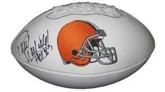 Paul Warfield was in the Pro Bowl eight times, and was named All League six times. In 1968 he caught 50 passes and for the only time in his career gained over 1,000 yards in receiving (1,067 yards). That year he scored 12 touchdowns as the Browns reached the NFL Championship for the third time in the 1960s. Paul Warfield has hand autographed this Cleveland Browns Logo Football with HOF 83 inscription. MAB Hologram and Certificate of Authenticity from Athlon Sports.