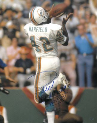 Paul Warfield was a wide receiver in the 1960s and 1970s known for his speed, fluid moves, grace, jumping ability and hands. He was a member of the 1972 Dolphins who completed the season an astounding 17-0. Warfield was elected into the Pro Football Hall of Fame in 1983 with over 8,500 receiving yards and 85 touchdowns. Paul Warfield has hand signed this 16X20 photo and has written the inscription "HOF 83." Leaf Authentics Hologram and Certificate of Authenticity from Athlon Sports.