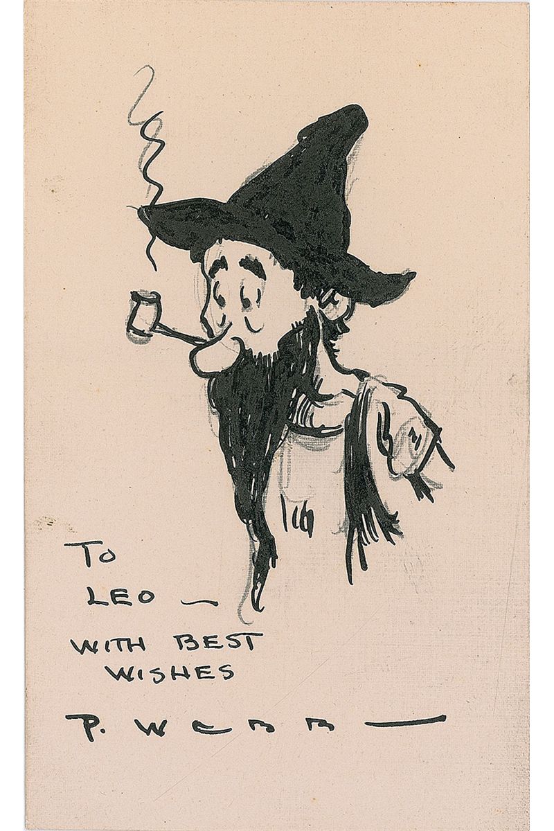 Original ink and pencil sketch of Luke, a hillbilly from Webb’s series for Esquire entitled The Mountain Boys, on an off-white 3 x 5 card, signed and inscribed “To Leo—with best wishes, P. Webb.” In fine condition, with some trivial soiling.