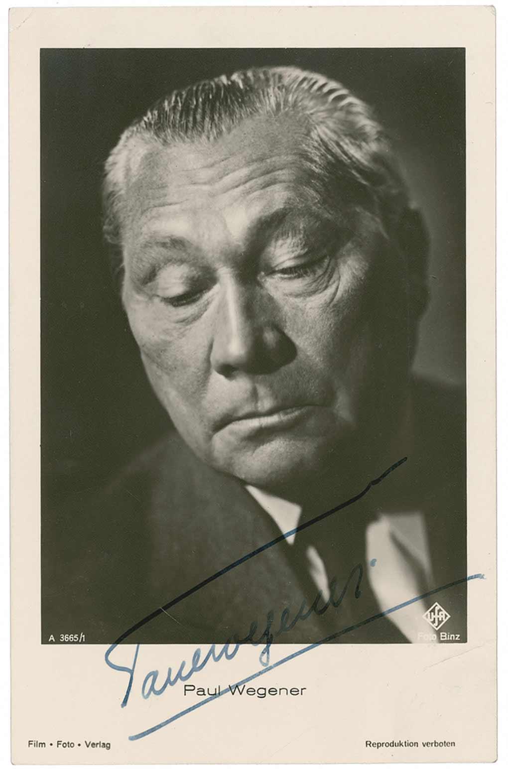 Imposing German actor best remembered as the title character in Der Golem. Vintage 3.5 x 5.5 German postcard photo, signed in fountain pen. In fine condition, with crease to lower left corner, and a few surface impressions.