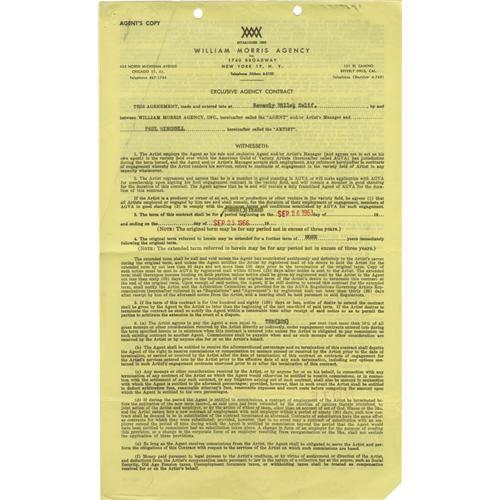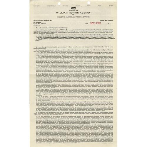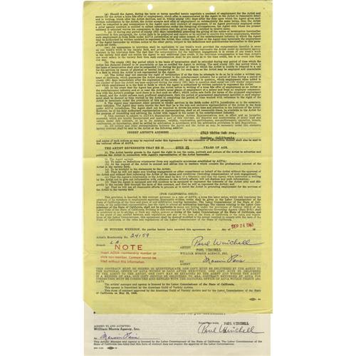 <B>Paul Winchell Signed Contracts.</B></I> Two standard William Morris Agency contracts, dated September 26, 1963, and signed by ventriloquist and voice actor Paul Winchell. Both are in Excellent condition with horizontal fold creases. <I>With COA from PSA/DNA.</B></I>