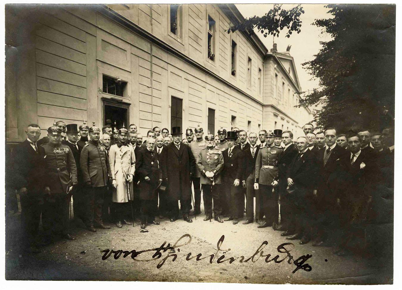 German President Paul von Hindenburg World War I signed photograph. Black and white image boldly signed in black felt tip ink, ''von Hindenburg.'' Image measures approximately 6.5'' x 9''. Official stamp to verso reads, ''Urheberrecht biebt vorbehalter.'' Overall, very good condition.