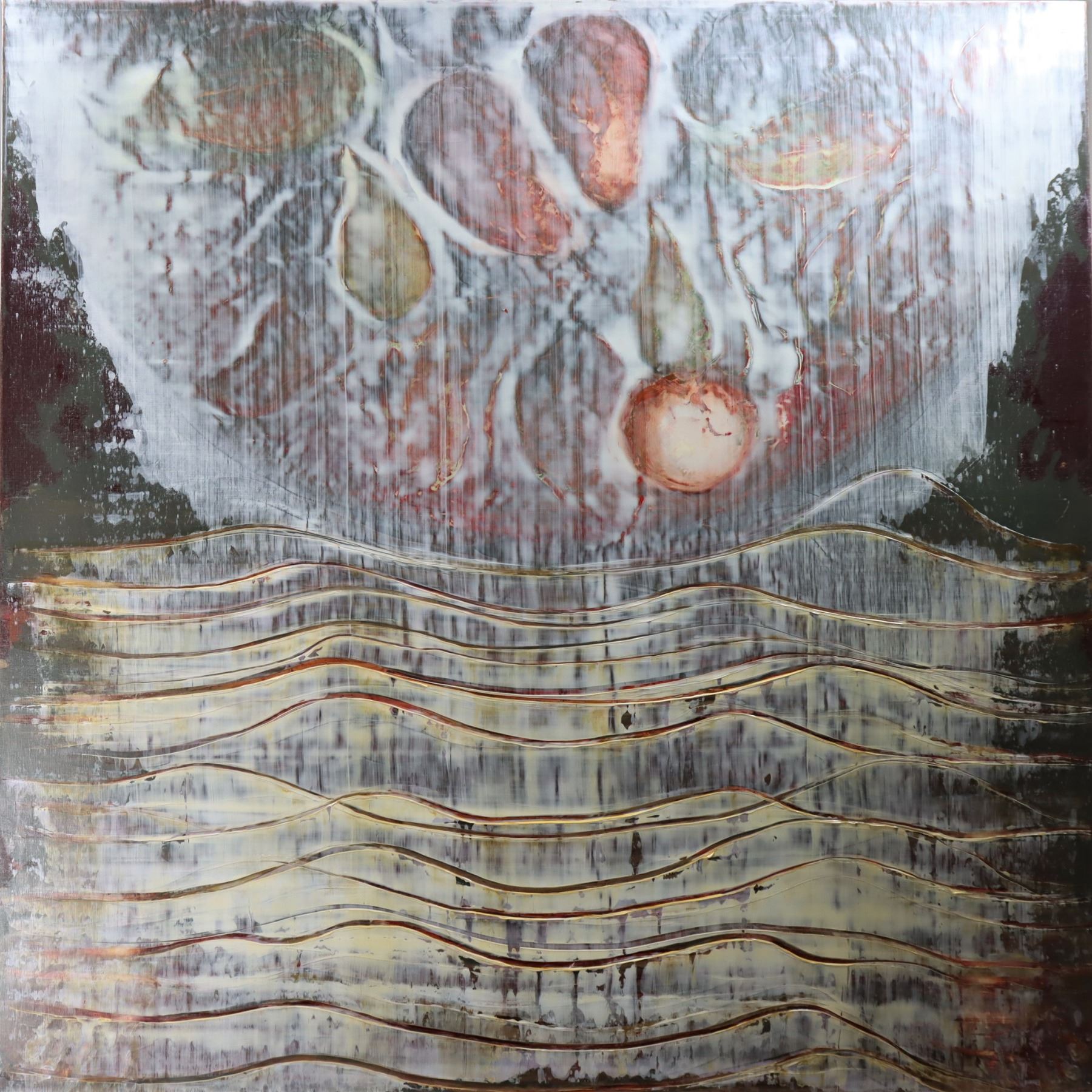 Abstract encaustic painting on canvas, faintly signed on the back (see photo). Paula Nees' work has been included in juried and invitational exhibitions including the Whitney Museum of American Art Biennial Exhibition, the Chicago Art Institute, the Butler Art Institute in Ohio, and the Huntington Museum of Art in West Virginia.