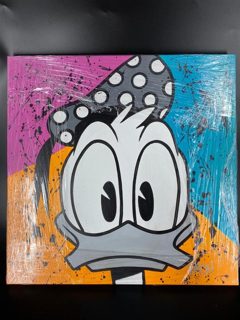 Paulina Del Mar "Black and White Donald Duck (Walt Disney)" Original Acrylic on Stretched Canvas Dimensions: 24 x 24 inches Original, One of a Kind