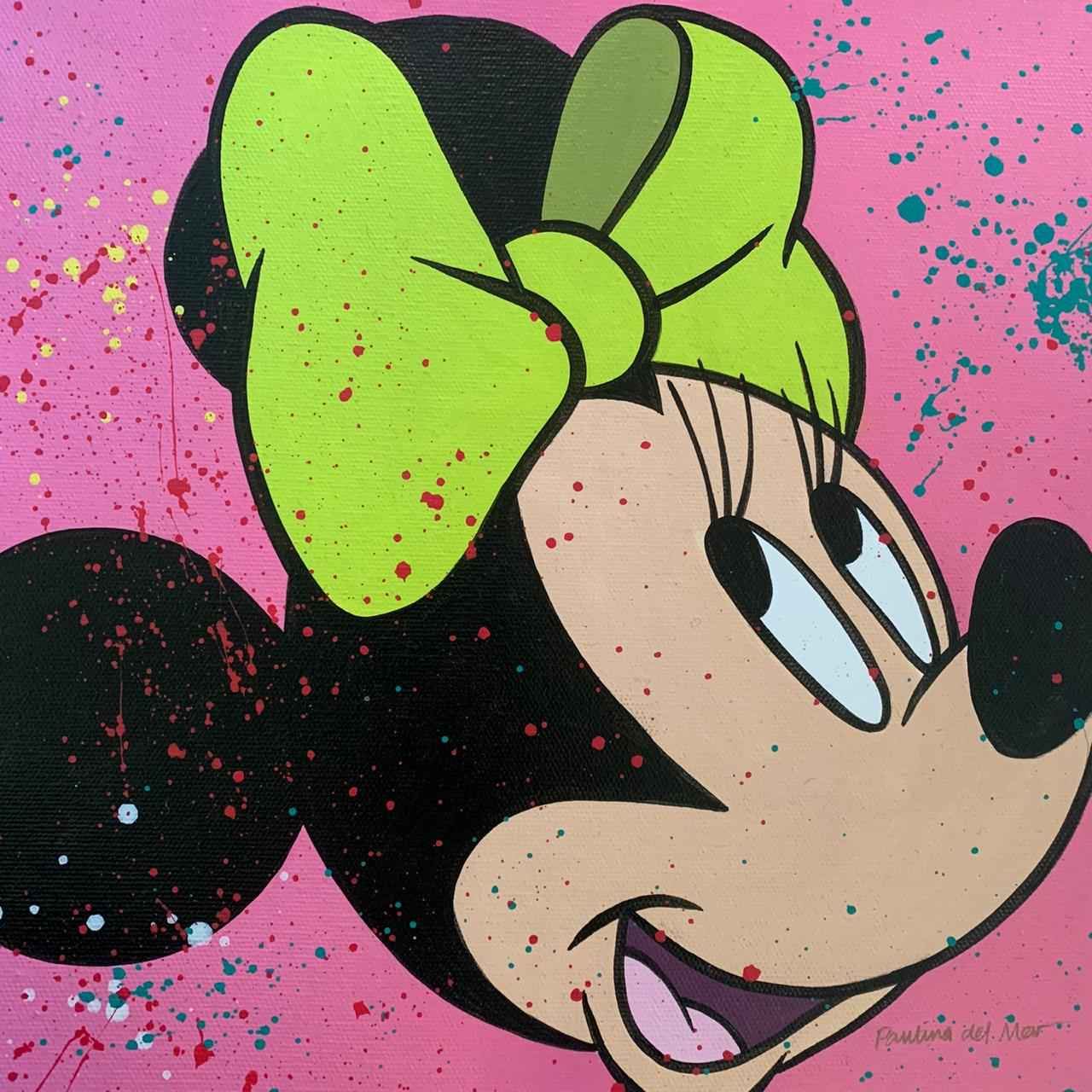 Paulina Del Mar "Minnie Mouse in Pink"  Original One of Kind Mixed Media Acrylic on Stretched Canvas, Hand Signed Dimensions:   12 x 12 inches
