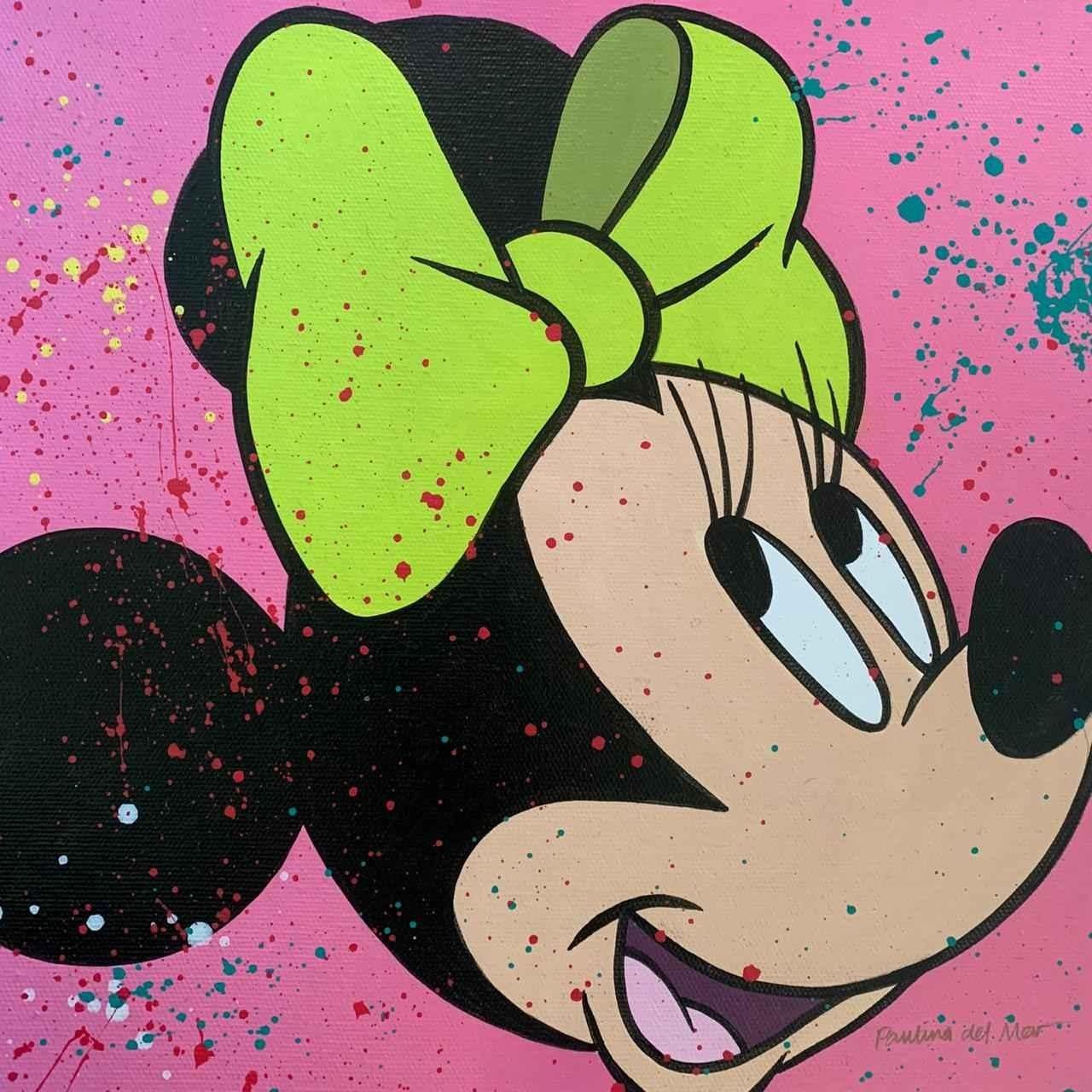 Paulina Del Mar "Minnie Mouse in Pink" Original One of Kind Mixed Media Acrylic on Stretched Canvas, Hand Signed Dimensions: 12 x 12 inches
