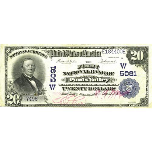 Pauls Valley, OK - $20 1902 Plain Back Fr. 658 The Firs