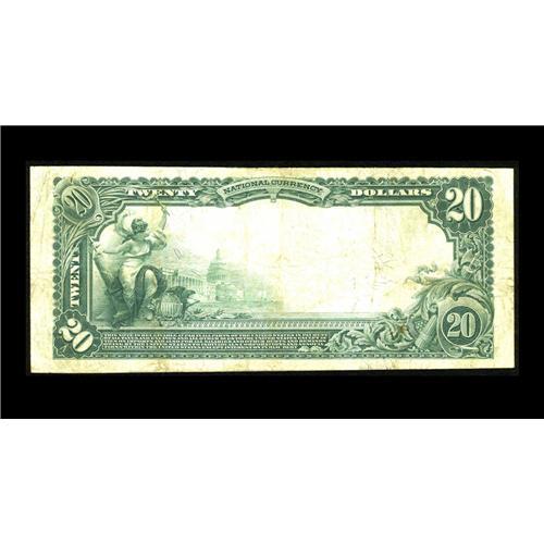 <B>Pauls Valley, OK</B></I> - $20 1902 Plain Back Fr. 658 <B>The First NB</B></I> Ch. # (W)5091<BR>A bright and colorful example from this popular Garvin County location. <B>Very Fine,</B></I> with the tight bottom margin more than compensated for by the bold red stamp signatures.