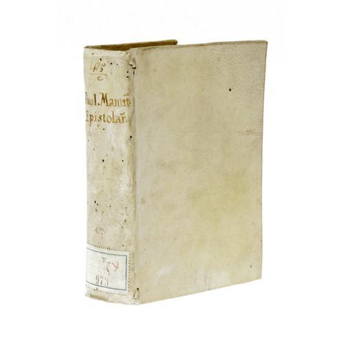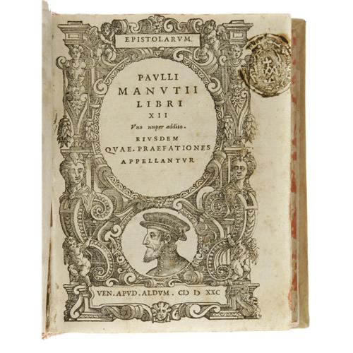 <B>Paulus Manutius: <I>Epistolarum</B></I></B></I> Paulli Manutii Libri XII. (Venice: Aldus, 1580). Small 8vo; full vellum. Some light foxing; few loose pages. Lovely title page with Vatican stamp. Very Nice copy of this Aldus imprint. From the Henry E. Luhrs Collection. <BR><BR><B>Important notice:<