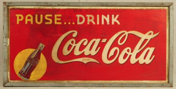 Single-sided sign in wood frame. 71-1/2" x 35-1/2".