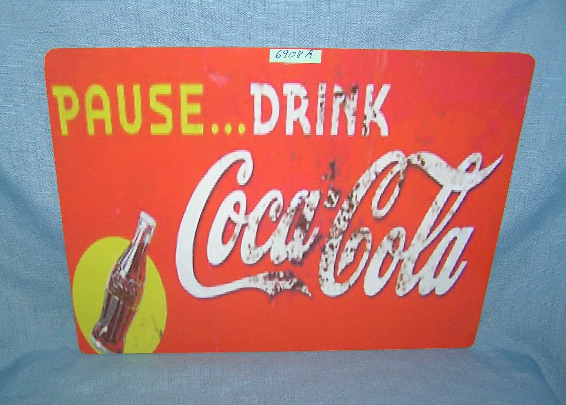 Pause drink Coca Cola retro style advertising sign printed on PVC hardboard these signs are auctioned for their decorative and display purposes 12 inches by 16 inches est. value $40.00-$50.00