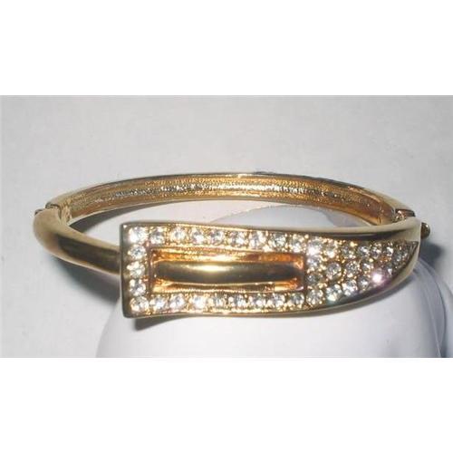 <tr><td>Title:Pave Rhinestone & Gold Tone Hinged Bangle</td></tr>