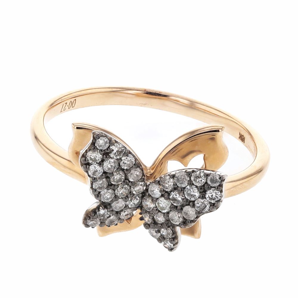 Pave-set Diamond Butterfly Ring in Rhodium 18K Two Tone Rose Gold | 426928 6.5 Grams, featuring 0.27 ct 36 ct ct 18 ct