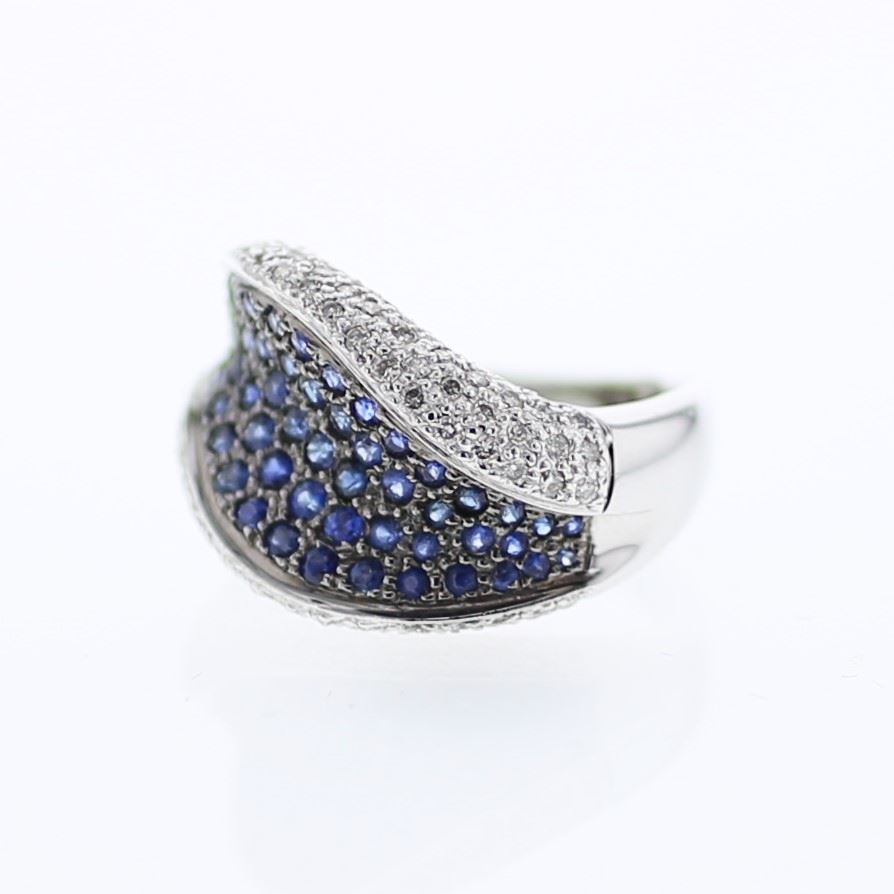 REF-117K7R ---- Pave-set Blue Sapphire & Diamond Ring in 14K White Gold