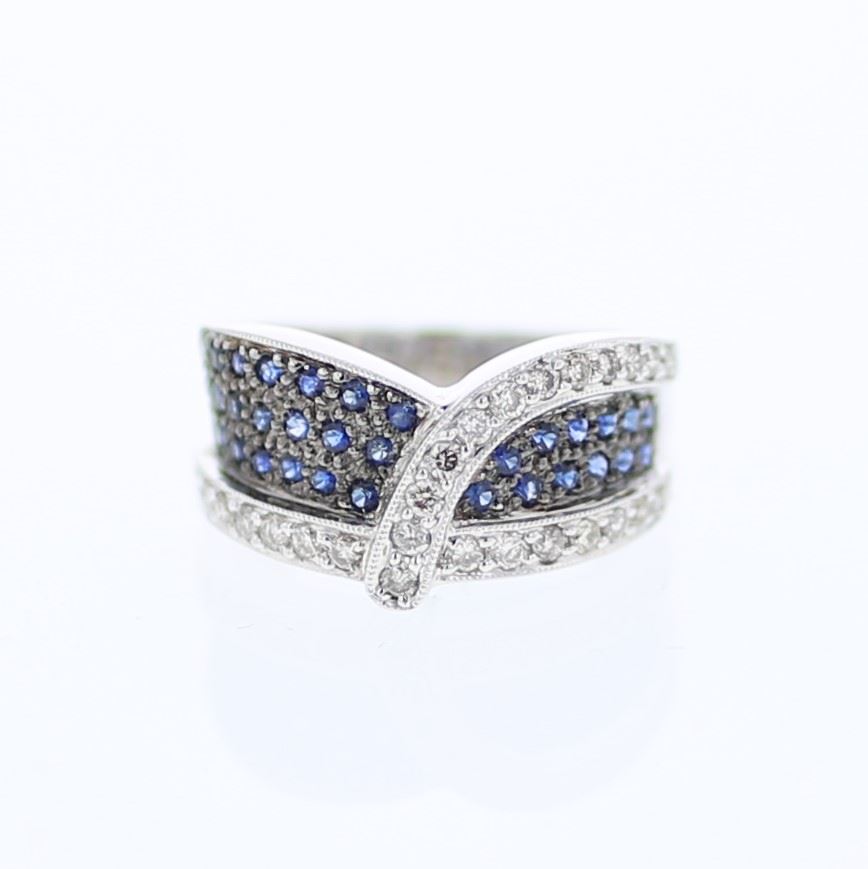 Pave-set Diamond Ring w/ Blue Sapphires in 14K White Gold
