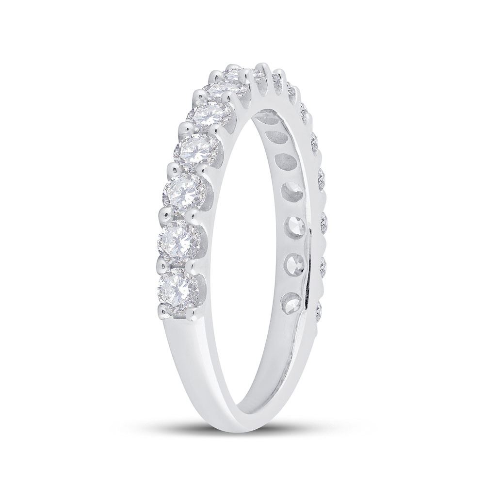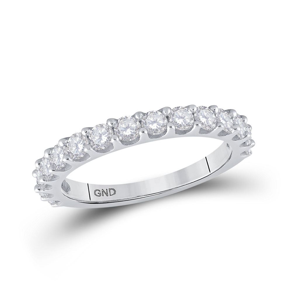 14kt White Gold Womens Round Pave-set Diamond Single Row Wedding Band 1 Cttw