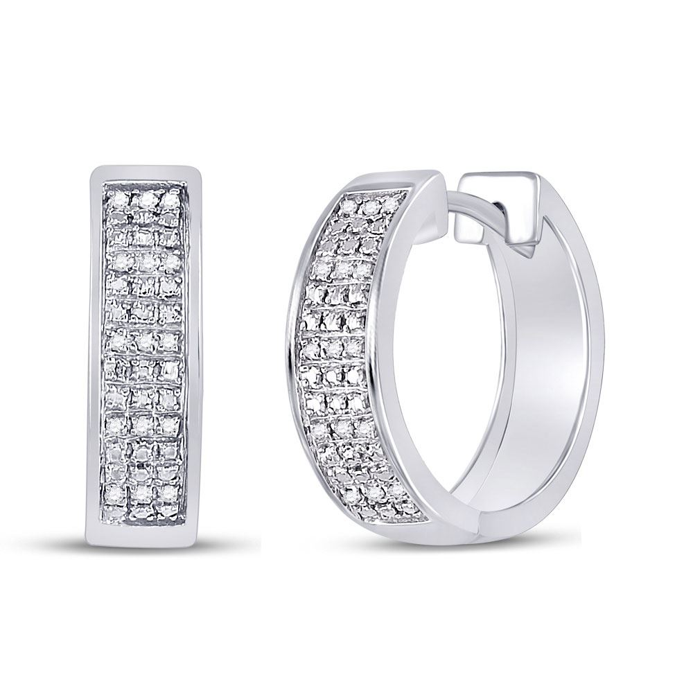 Sterling Silver Womens Round Pave-set Diamond Triple Row Hoop Earrings 1/10 Cttw