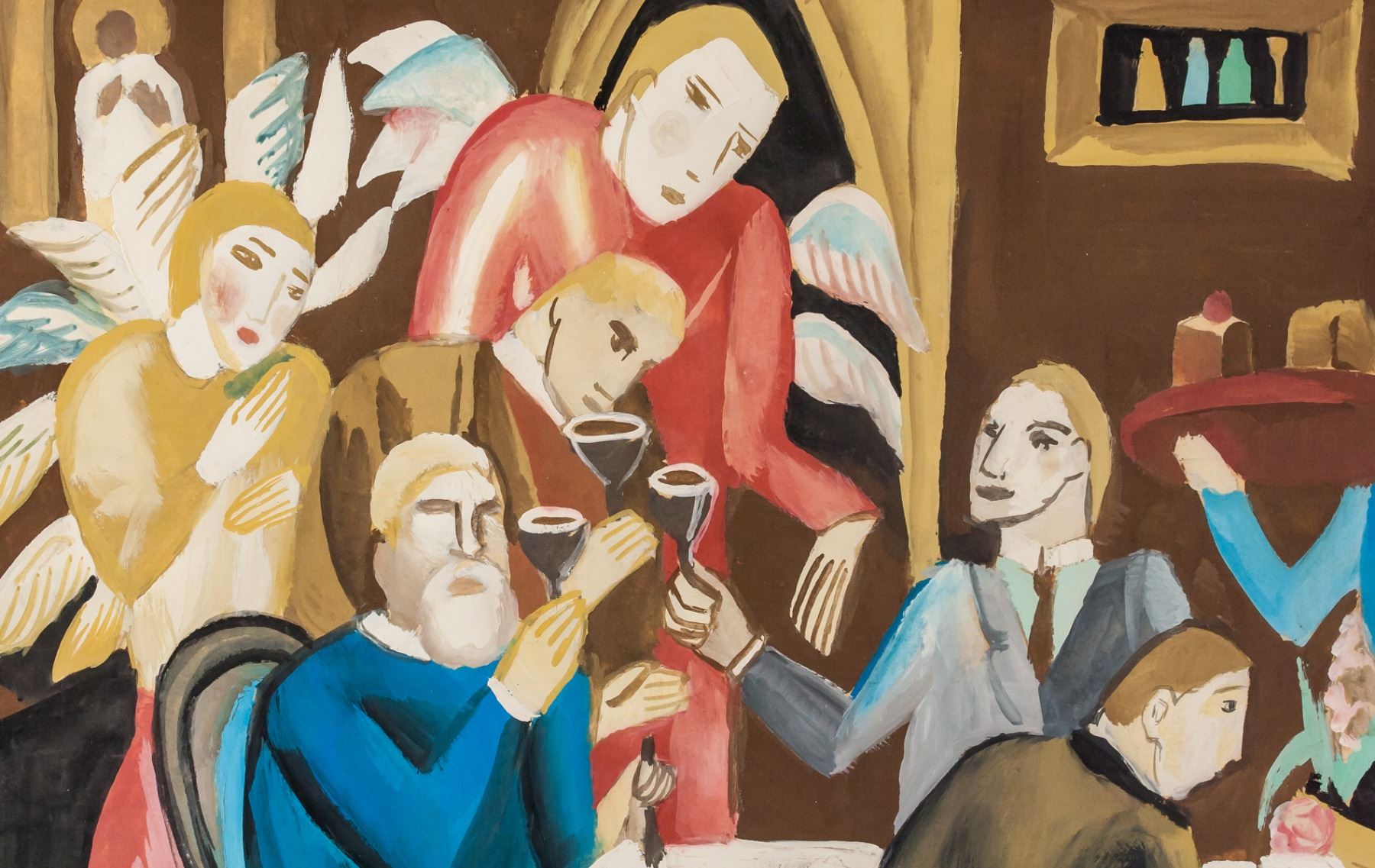 Gouache on paper. Featuring a portrait of a dining scene. Signed Filonov on the lower left corner. Attributed to Pavel Filonov (1883-1941, Russian). 20.5 x 29 cm (8 x 11.5 inches). PROVENANCE: This lot carries limited provenance from a Southern Ontario estate