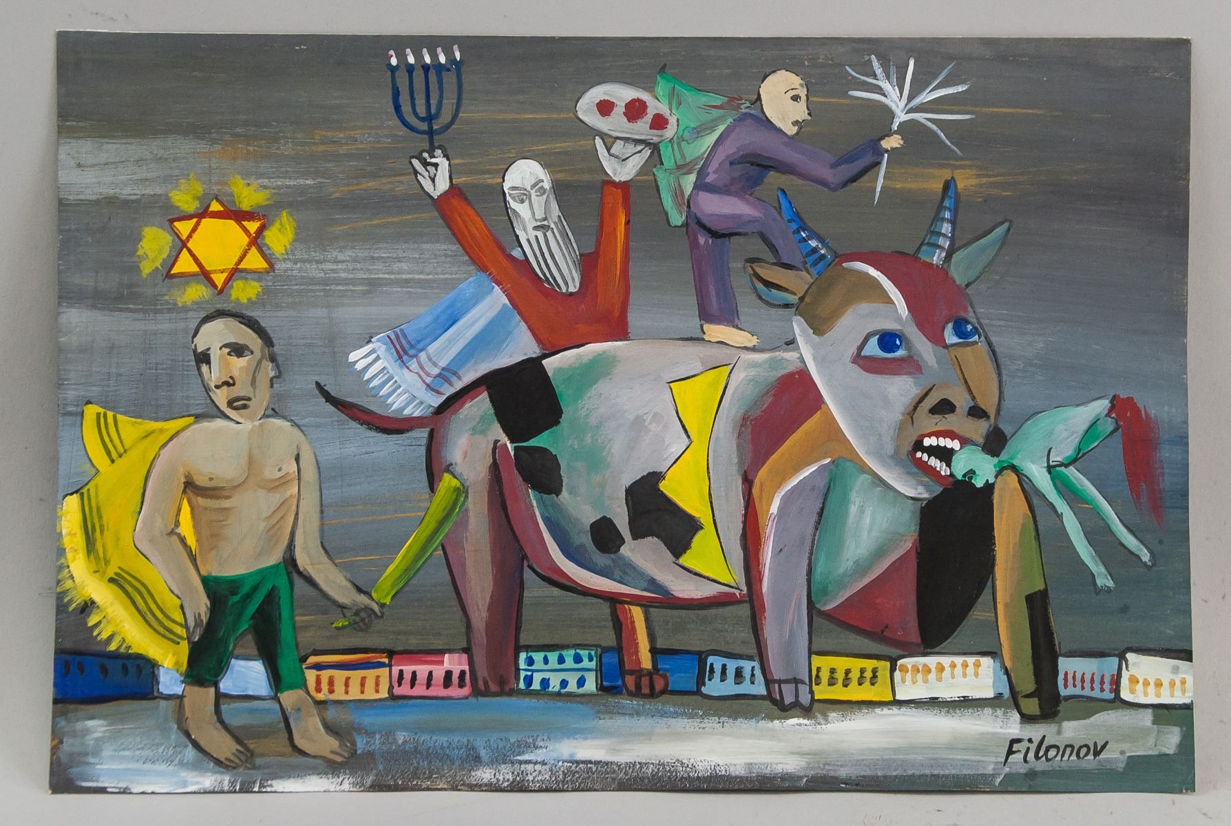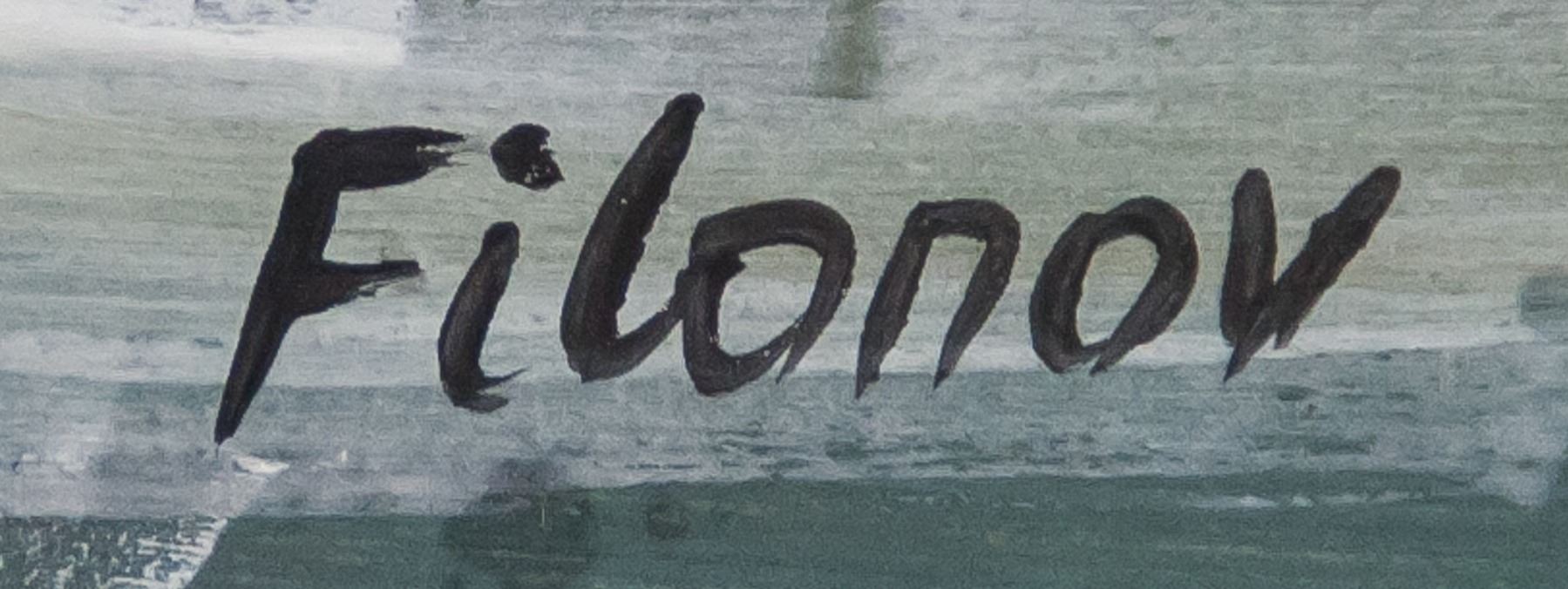 Tempera on paper. Featuring a portrait composition scene. Signed Filonov on the lower right corner. Attribtued to Pavel Filonov (1883-1941, Russian). 20 x 29.5 cm (7.9 x 11.6 inches). PROVENANCE: Southern Ontario estate
