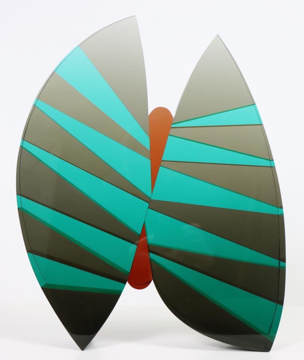 Beautiful Cast, painted glass, cut and laminated, and signed piece by Pavel Hlava. The title of the glass work is "Summerfly" and is signed. Has original bill of sale.